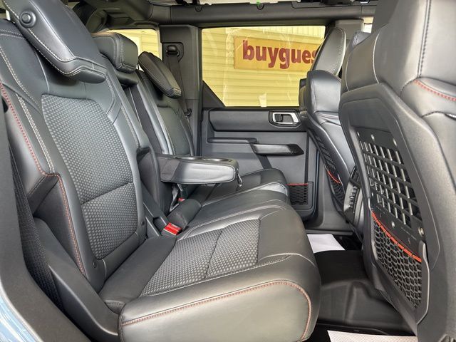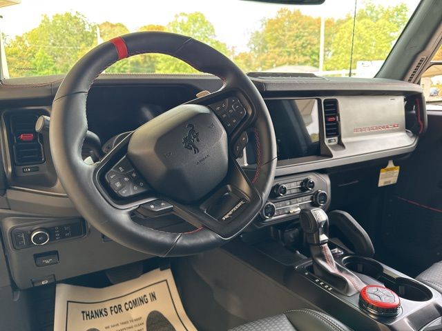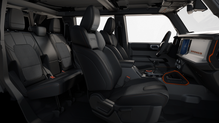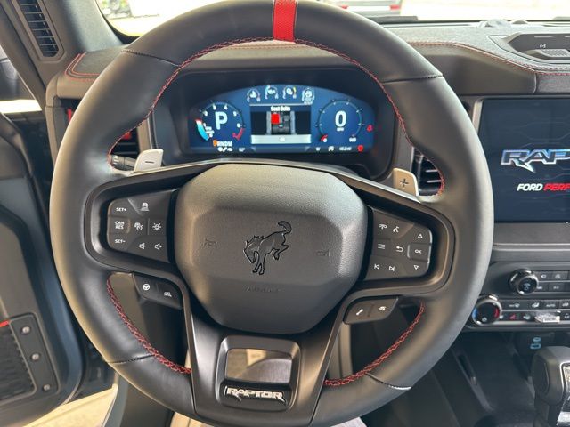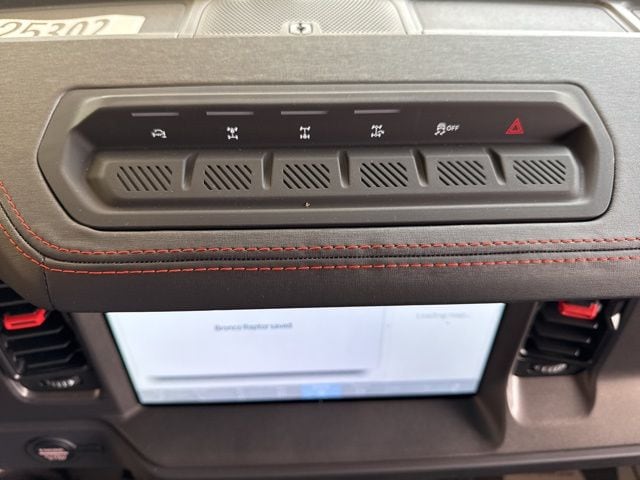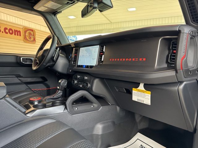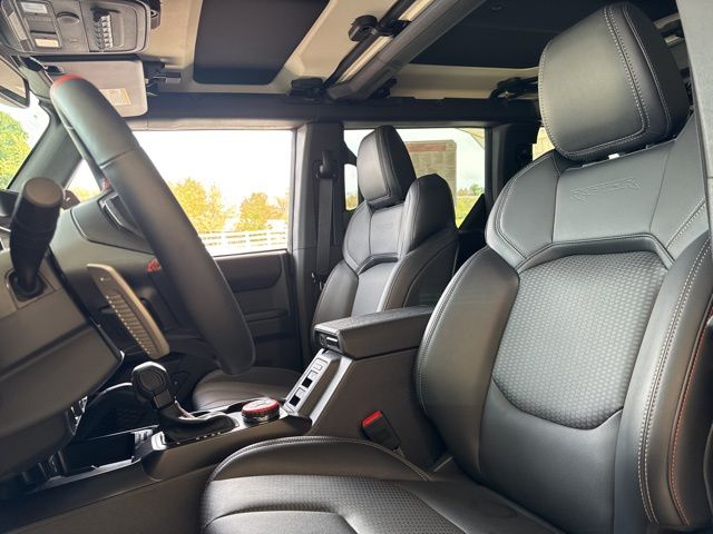 Inside, the Bronco Raptor's luxurious cabin is designed to keep you comfortable and connected. Enjoy the convenience of dual-zone automatic climate control, the clarity of the premium B&O sound system, and the seamless integration of the SYNC 4 infotainment system. The heated steering wheel and seats ensure you stay cozy, even in the harshest conditions.