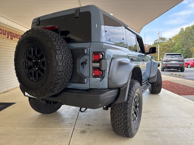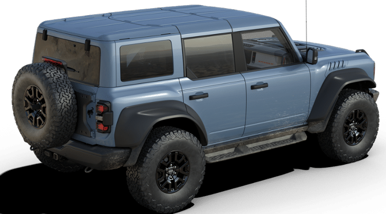 Exterior highlights include the distinctive Raptor styling, bold fender flares, and aggressive off-road tires, giving the Bronco Raptor a commanding presence on the road. The body-color hardtop and 17-inch black-painted aluminum wheels add a touch of sophistication, while the rear-window defroster and washer ensure clear visibility in any weather.