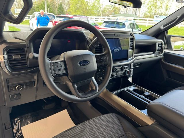 The interior of this F-150 is designed with your comfort and convenience in mind. Enjoy the premium features, including the SYNC 4 infotainment system, 12" cluster display, and unique cloth front seats. The FX4 package also adds off-road-tuned suspension components and protective underbody skid plates, ensuring your adventures are both thrilling and secure.
